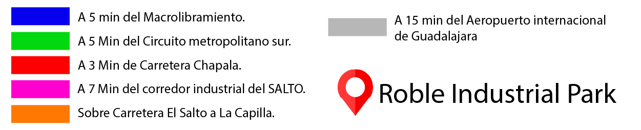 La privilegiada ubicación que ofrece EL ROBLE INDUSTRIAL PARK es inmejorable, se encuentra justo en el centro de los 4 puntos estratégicos para transportar la mercancía de cualquier empresa.